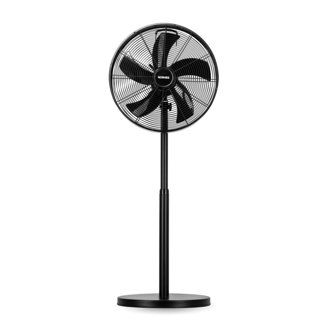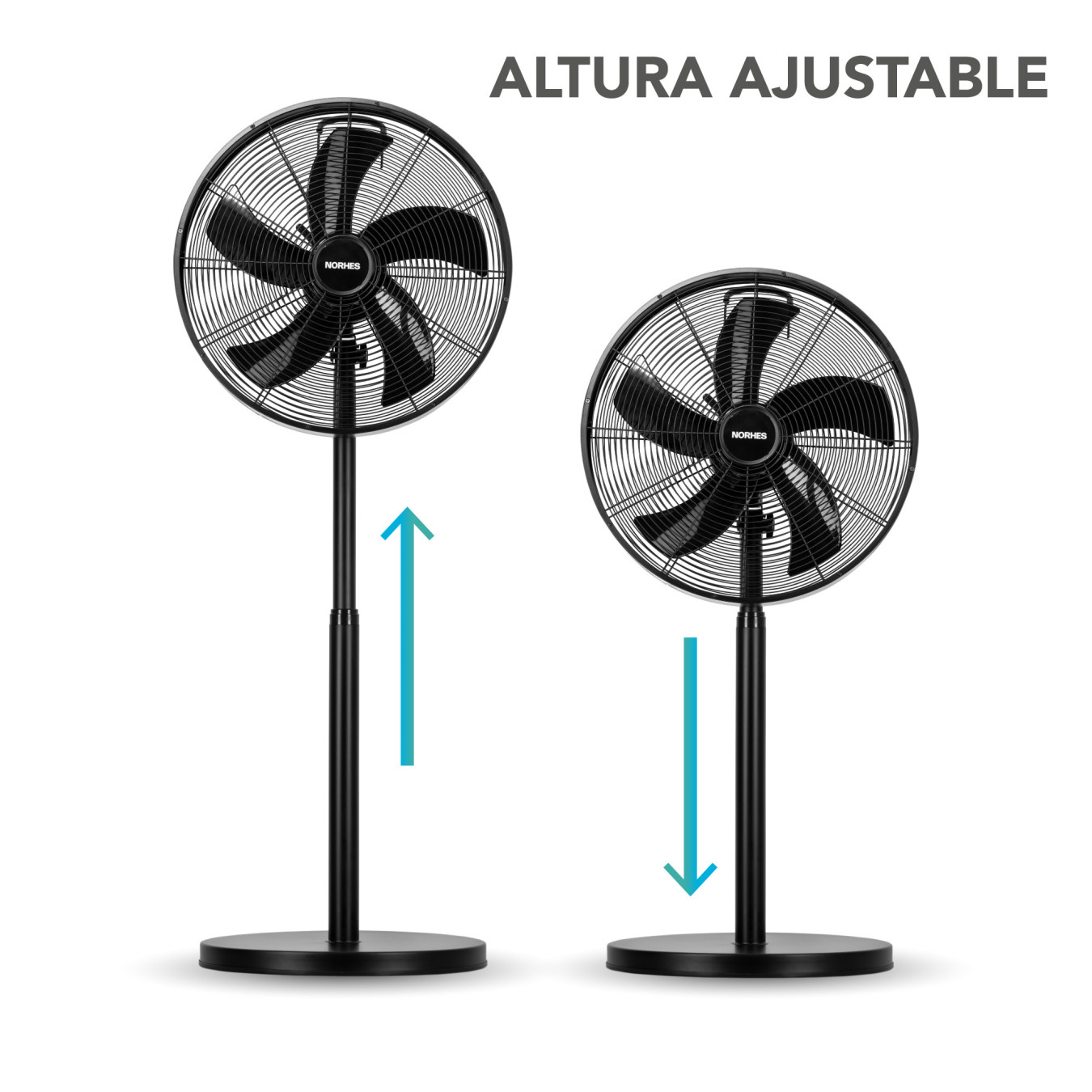 Con una altura regulable de hasta 123 cm y una base redonda de acero, el ventilador de pie proporciona estabilidad y estilo. Su diseño en color negro complementa cualquier decoración, haciendo de este ventilador una elección perfecta para todo tipo de espacios.