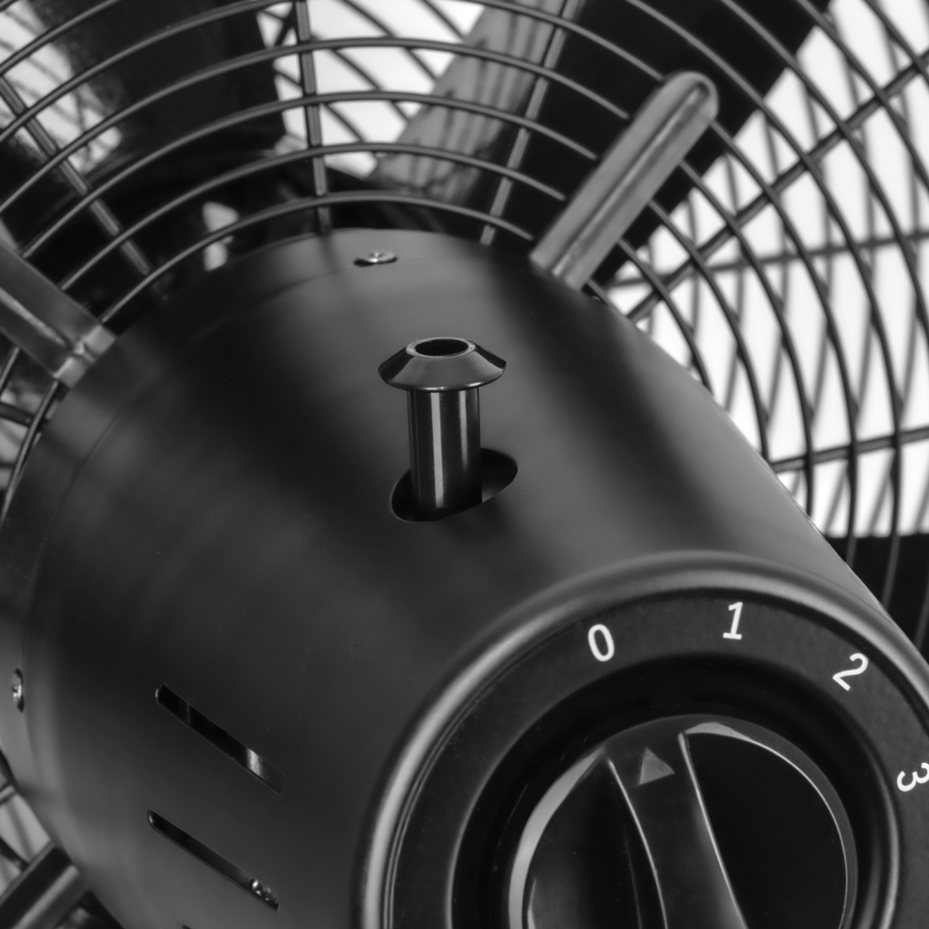 Equipado con 5 aspas aerodinámicas de acero de alta calidad y una rejilla de acero, es sinónimo de durabilidad y seguridad. Sus 5 palas aseguran un gran caudal de aire fresco.