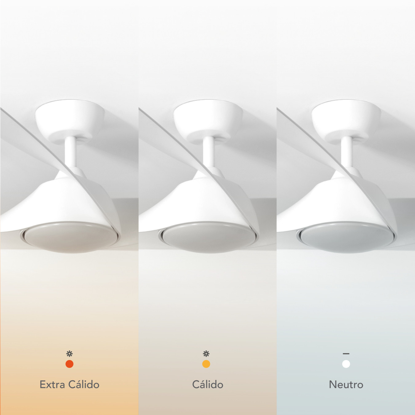 Mando a distancia para encender y apagar el ventilador y la luz de manera independiente. Incluye función de verano e invierno. Permite seleccionar hasta 6 velocidades. Regulador de intensidad de luz y temperatura de color. Brisa natural. Temporizador programable con apagado automático en 1, 4 u 8 horas.