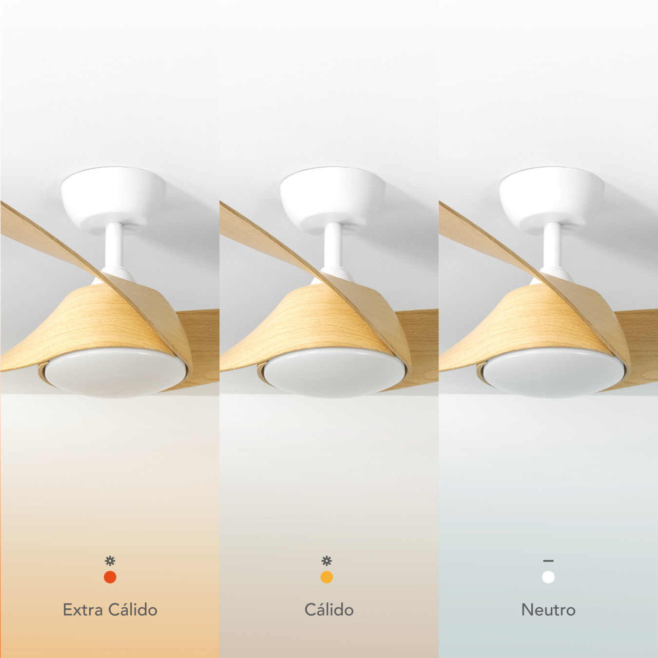 Ventilador de Techo Zelha Blanco/Efecto Madera Clara con Luz LED 24W Mando a Distancia 3 Aspas Ø132 cm Motor DC 45W